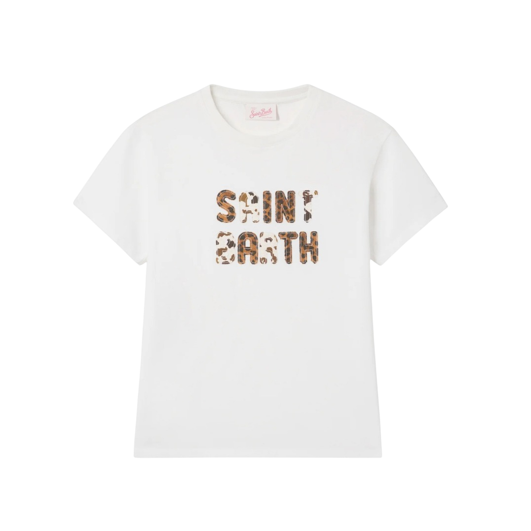 La t-shirt Emilie è realizzata in tessuto di puro cotone progettato per offrire comfort e una sensazione fresca sulla pelle. Il design bianco tinta unita valorizza la costruzione essenziale del capo, mentre la patch ricamata St. Barth con motivo animalier aggiunge un elemento grafico distintivo. Il modello presenta collo a girocollo, maniche corte e linea dritta con vestibilità regolare. T-shirt Emilie Puro cotone Bianco Tinta unita Patch logo animalier ricamata Scollo a girocollo Maniche corte Vestibilità regolare