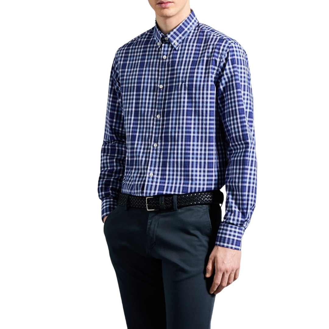 Tessuto in popeline di cotone Camicia collo button down J-Fit Long Sleeve Fantasia Chiusura con bottoni