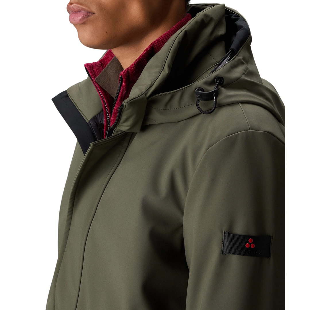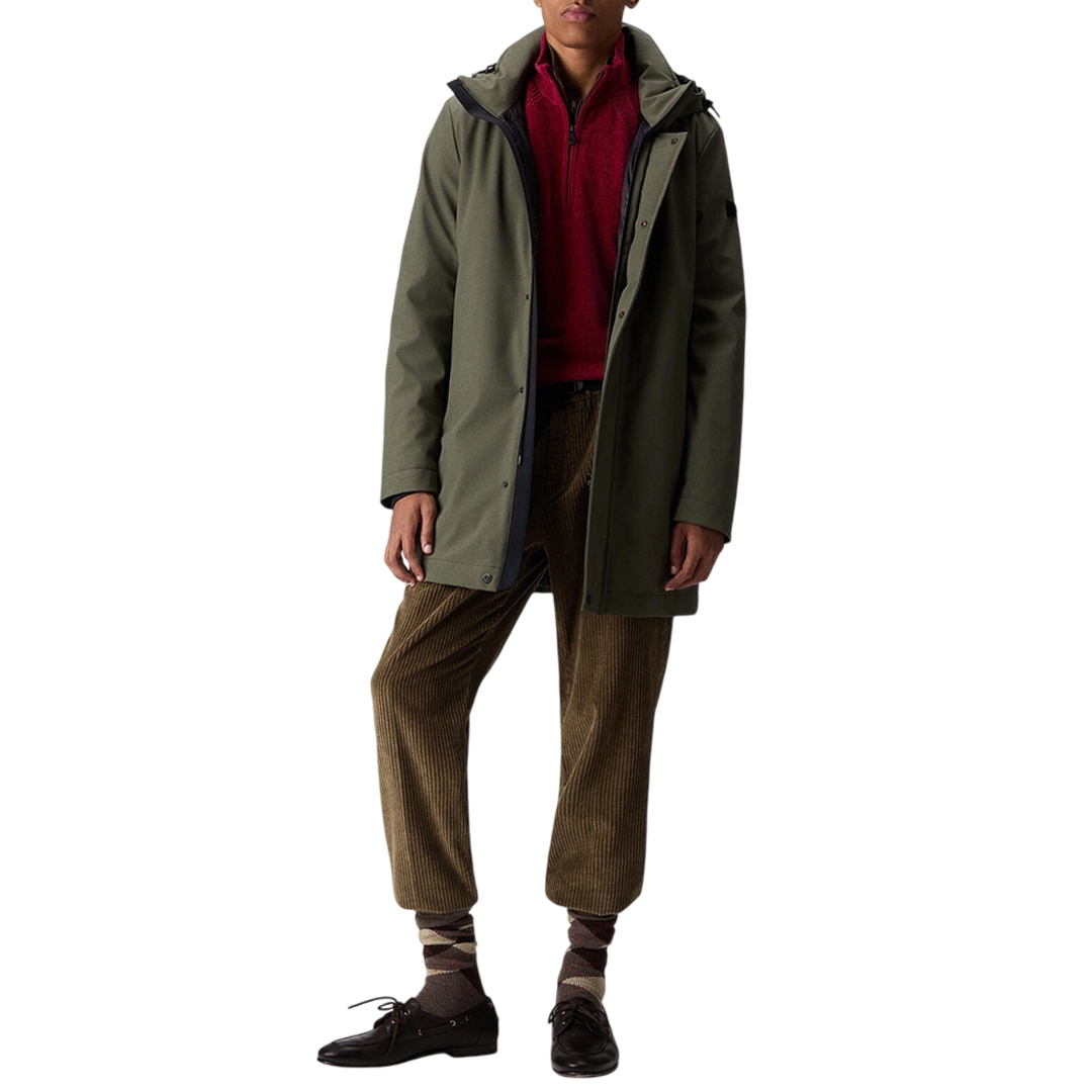 Trench liscio a tre strati con membrana interna, performante e leggera. Il tessuto tecnico, ingualcibile e confortevole è resistente all’acqua grazie all’ impermeabilizzazione eco-sostenibile Teflon TM EcoElite. L’imbottitura interna in Primaloft rende il capo molto caldo e nello stesso tempo molto comodo grazie alla sapiente distribuzione dell’ovatta. La funzionalità del modello è mutuata dai capi da trekking e l’aspetto è molto pulito ed essenziale. Cappuccio staccabile, chiusura centrale con zip nascosta e tasche laterali. Un modello dalle eccellenti prestazioni di tenuta e calore, adatto alle occasioni più formali, da indossare anche come sopra giacca. Zip centrale nascosta Lunghezza: lunga Imbottitura sintetica riciclata Primaloft Cappuccio staccabile Tela di nylon stretch Vestibilità regular