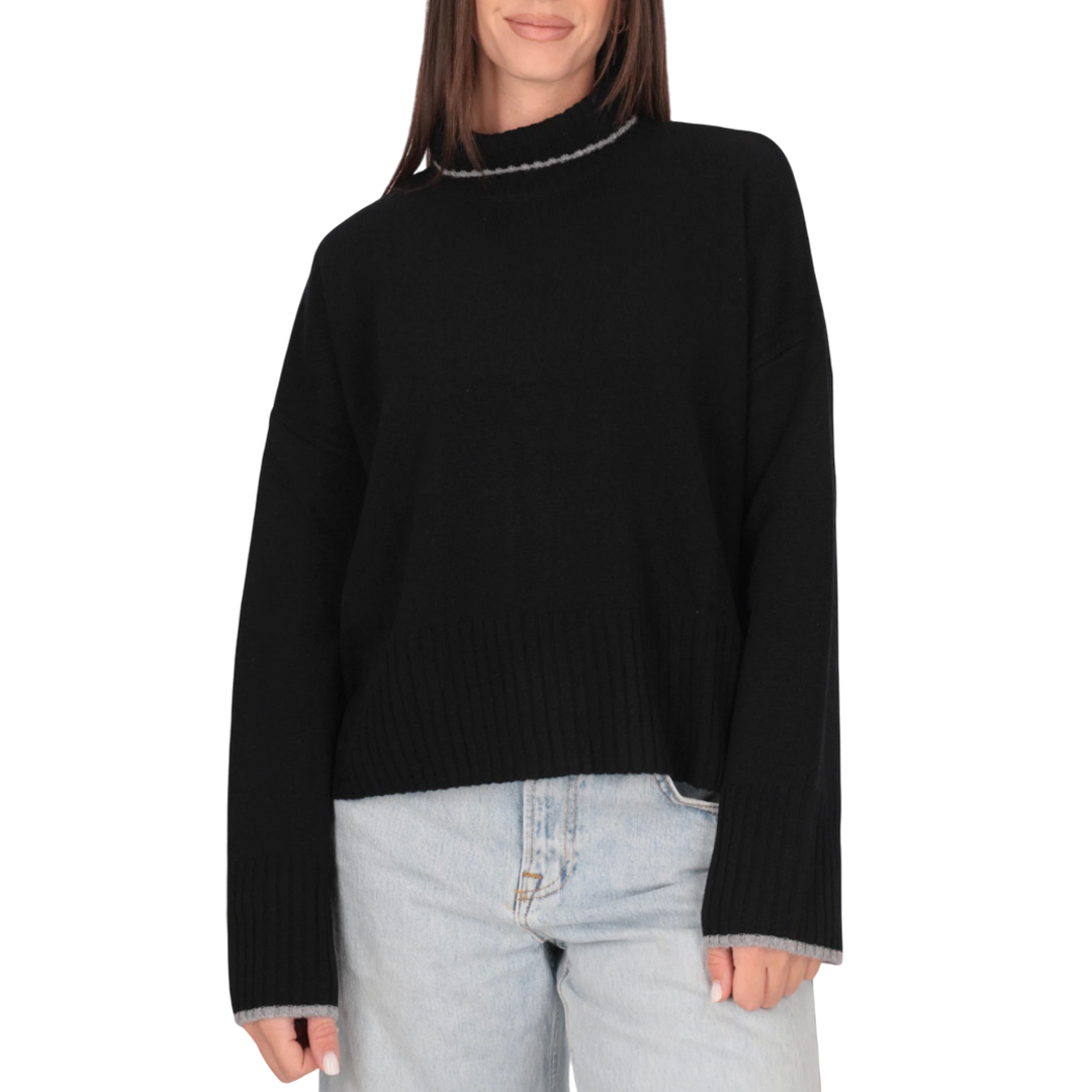 Dolcevita a maniche lunghe in misto lana merino e cashmere, ideale per scaldare i tuoi outfit della stagione fredda. Essenziale e contemporaneo, questo design diventerà il protagonista indiscusso di tutti i tuoi outfit, qualunque sia l'occasione. Il filato a contrasto su scollo e polsini dona un tocco di vivacità al design. Scollo, orlo e polsini sono lavorati a coste, mentre il tocco finale è dato dall'etichetta con logo lettering PINKO sul retro. Il capo è stato sottoposto a prove di finissaggio per ridurre al minimo la possibile formazione di pilling, garantendo una maggiore morbidezza e durabilità del tessuto.