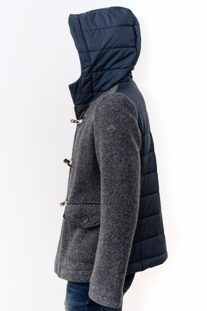 Montgomery Roy Rogers doppio tessuto,avanti lana dietro piumino con chiusura a zip piu alamari,cappuccio imbottito fisso,due tasche avanti,