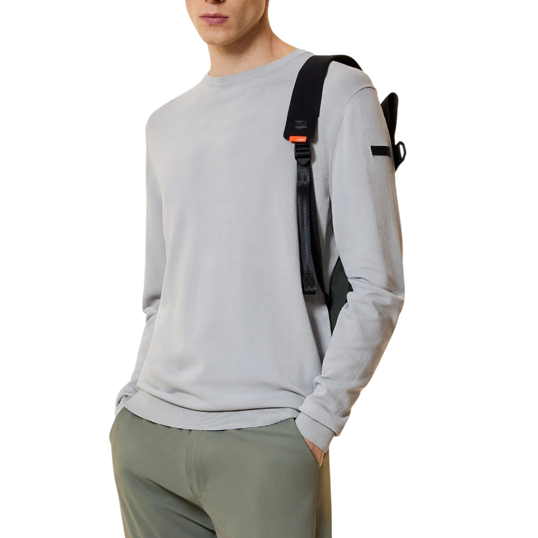 Realizzata per interpretare la vitalità delle mezze stagioni, questa maglia girocollo monocroma propone un’estetica pulita, essenziale e minimalista. Il filato stretch, morbido e finissimo al tatto, accompagna con naturalezza il fit regolare, offrendo comfort e versatilità in ogni momento della giornata. Un modello continuativo che si conferma tra i protagonisti della collezione. Il colletto, i polsini e il fondo in costina valorizzano la costruzione del capo con un tocco discreto, nel perfezionare una vestibilità impeccabile e l’appeal funzionale. L’intarsio arancione sul fondo posteriore e il logo a microiniezione nero sulla manica sinistra rendono creazione inconfondibile. Maxell Round Knit si presta alla creazione di diversi look casual e leisure, nell’abbinarsi con eleganza rilassata a pantaloni chino, cinque tasche o ai bermuda più versatili della collezione.