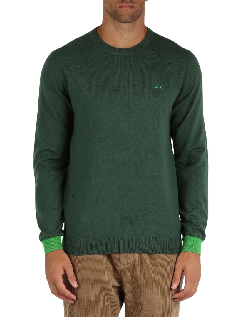 Sun 68 Maglia Round Elbow Contrast Verde K44127 130334