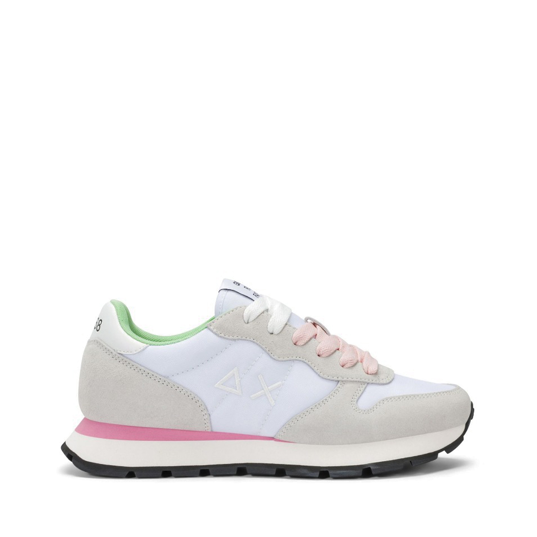 In equilibrio tra leggerezza sportiva e attitudine urbana, Ally è la sneaker femminile stile running che esprime in ogni dettaglio lo spirito SUN68. Perfetta da indossare con un pantalone chino per le giornate in città, si abbina con naturalezza ai look più casual per un'estetica dinamica e sempre distintiva. Sneaker Ally Solid da donna Stile running Realizzata in nylon e suede Etichetta con lettering ricamata sulla linguetta Logo SUN68 ricamato sul lato Chiusura con lacci Fodera in micro mesh Suola in EVA fresata a mano con battistrada in gomma a rilievo
