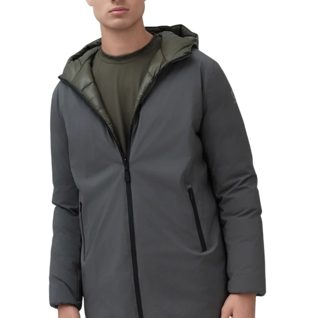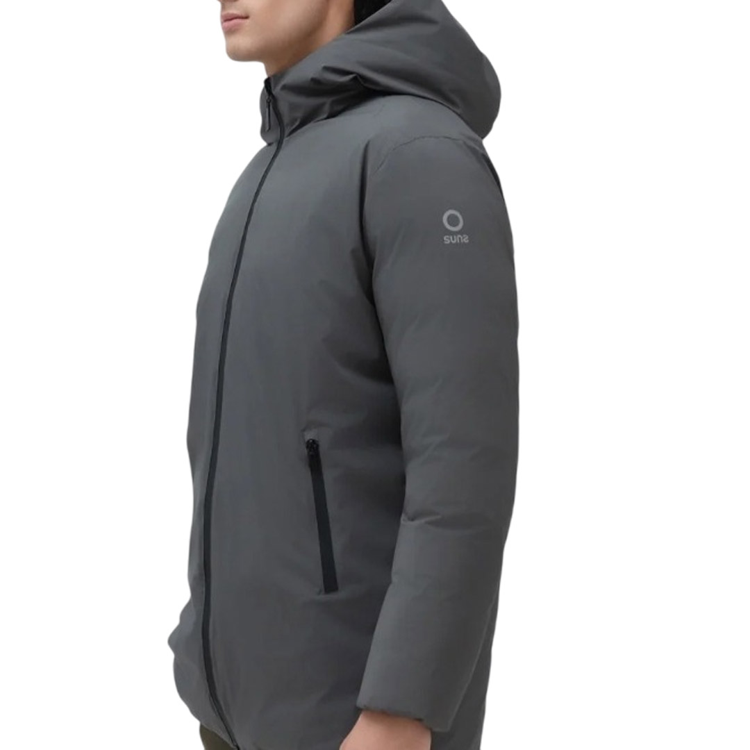 Un giubbotto tecnico da uomo dal design pulito e dalla funzionalità avanzata. Il tessuto idrorepellente e l'imbottitura in Thermolite assicurano isolamento e leggerezza. Il cappuccio fisso, la zip waterproof bicolore con lato interno arancione e i polsini in neoprene offrono protezione completa dalle intemperie. La lunghezza estesa lo distingue per praticità e stile, mentre la pinnetta arancione fluo sul fianco destro richiama l'identità dinamica del brand. Tessuto tecnico con trattamento idrorepellente: ideale contro pioggia e umidità. Imbottitura in Thermolite: calda e leggera per un comfort termico ottimale. Zip bicolore waterproof: funzionalità elevata con interno a contrasto arancione. Polsini interni in neoprene: aderenza confortevole e isolamento termico. Cappuccio fisso con collo protettivo: pensato per affrontare il freddo. Lunghezza estesa: copertura aggiuntiva per una maggiore protezione. Pinnetta arancione fluo laterale: richiamo distintivo dello stile Suns.