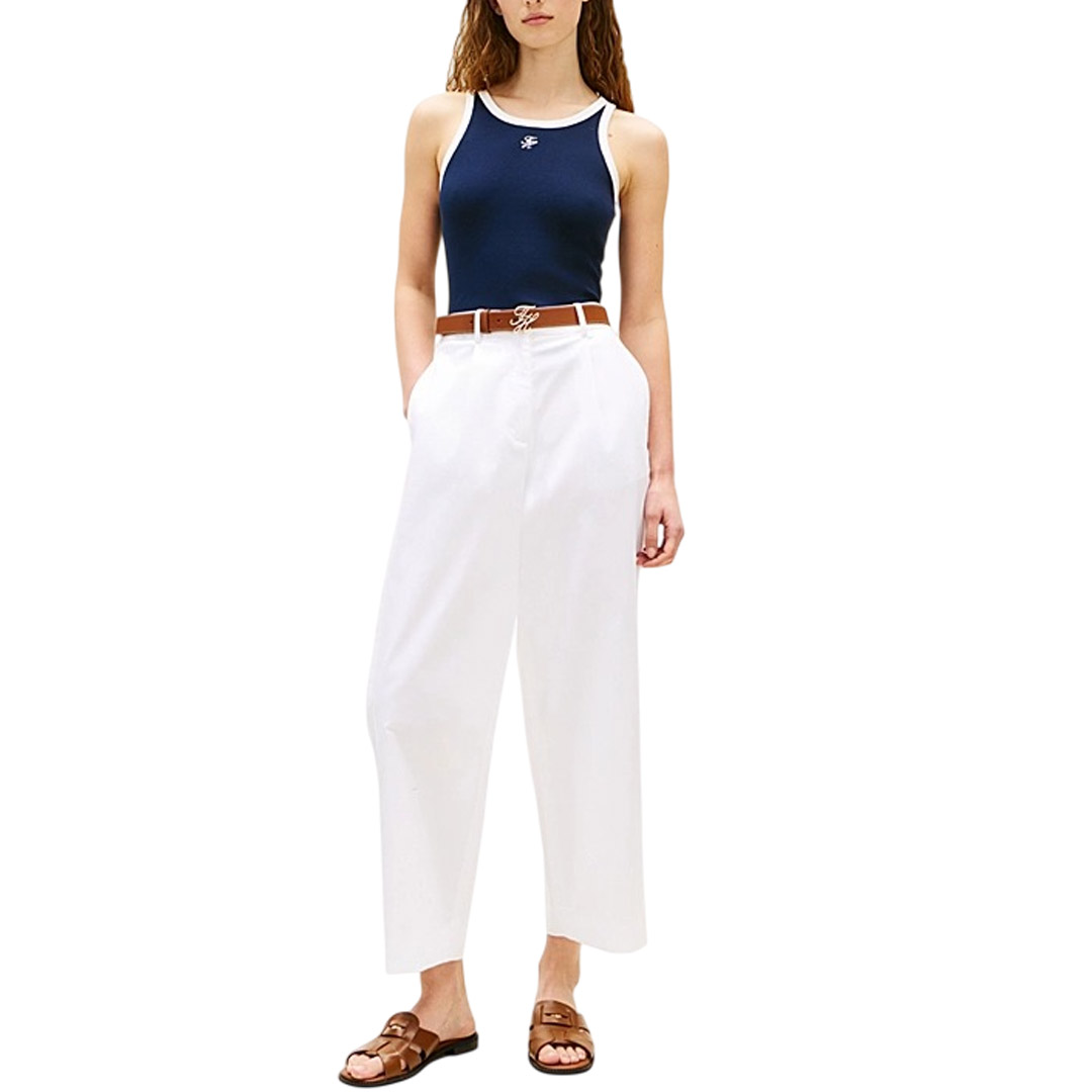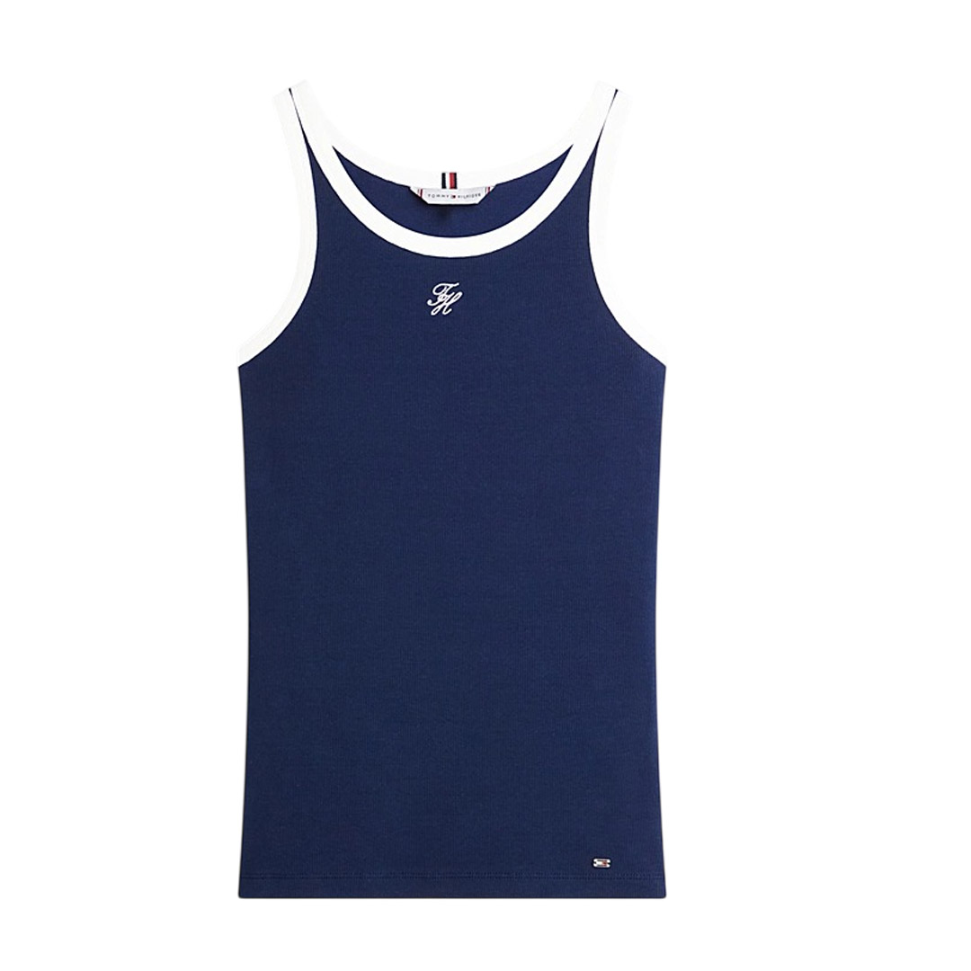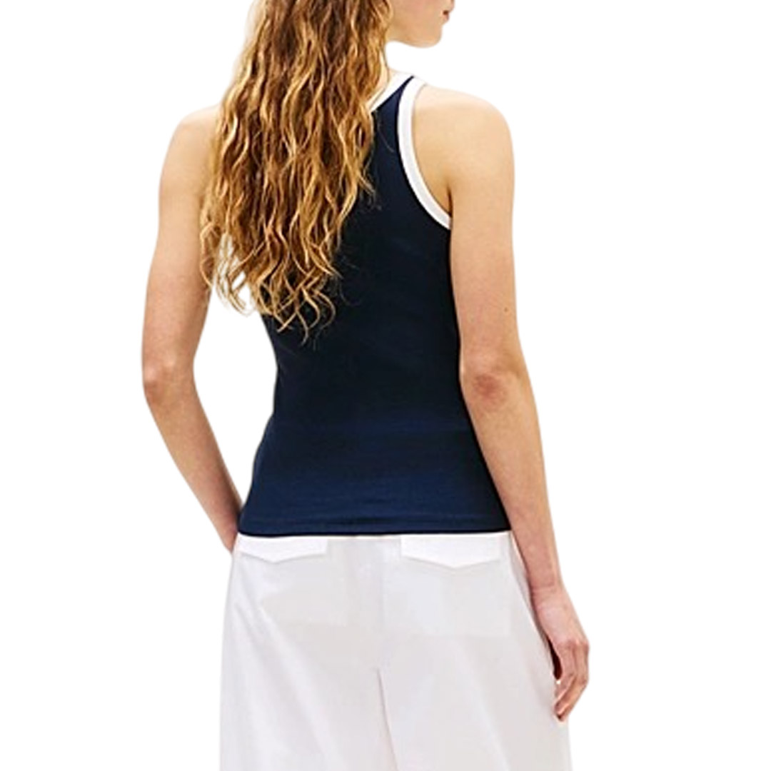 La canotta slim fit è realizzata in cotone stretch a coste, con i bordi a contrasto che donano un intramontabile fascino sportivo. • Cotone stretch • Texture a coste • Finiture a contrasto • Scollatura ovale • Nastro iconico all'interno del collo • Logo Tommy Hilfiger in corsivo ricamato sul davanti • Branding Tommy Hilfiger • Bandierina Tommy Hilfiger in metallo sul fondo