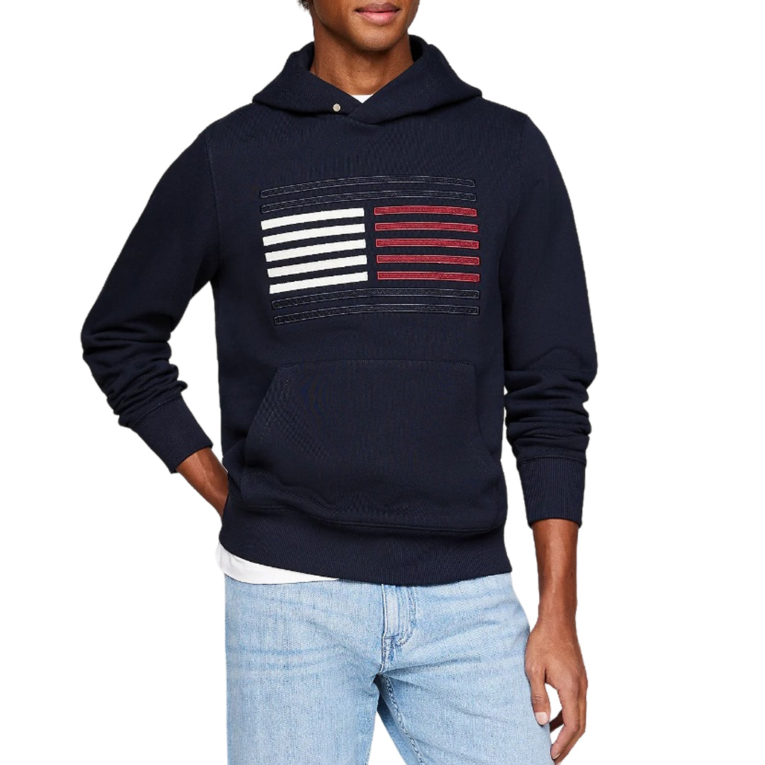 Tommy Hilfiger Felpa Con Cappuccio E Bandiera In Gros Grain Blu Mw0Mw37117 121759