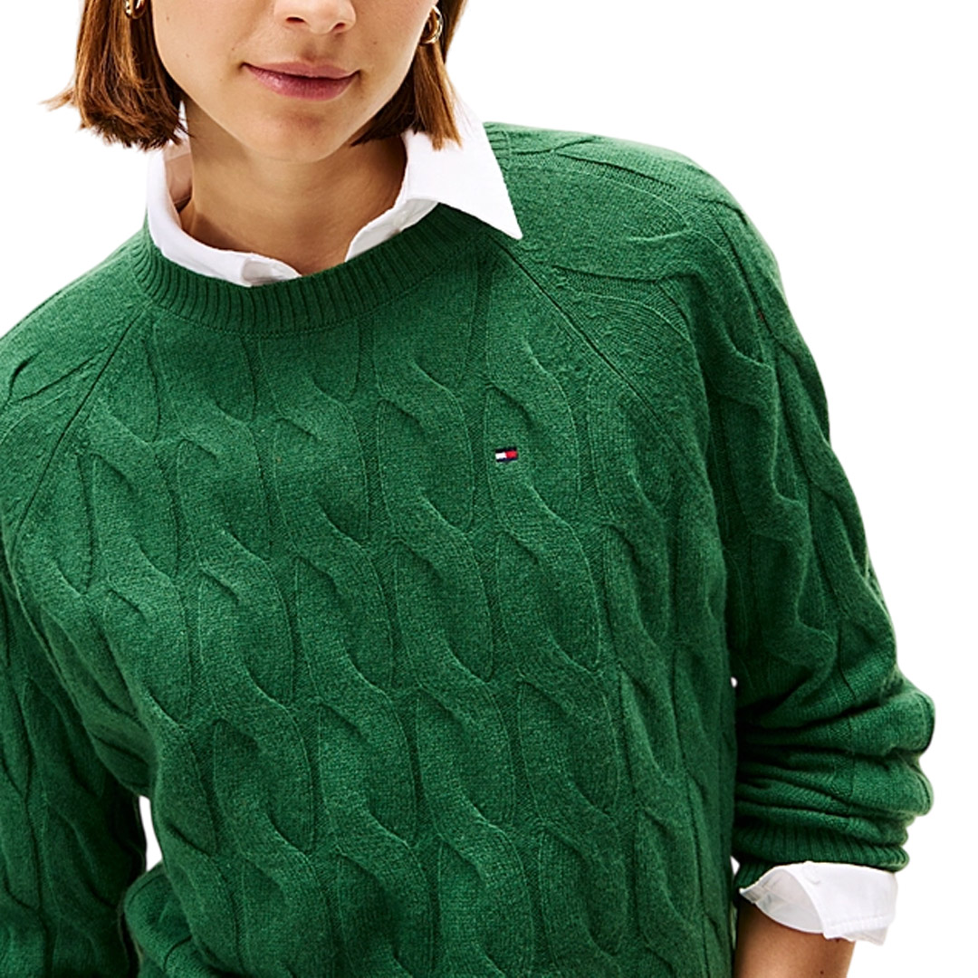 Il pullover relaxed fit in morbida lana, con l'intramontabile lavorazione a maglia intrecciata, è un capo iconico che non può mancare nella tua collezione di maglieria • Pura lana • Lavorazione a maglia intrecciata • Girocollo • Collo, polsini e fondo a coste • Nastro iconico all'interno del collo • Branding Tommy Hilfiger • Bandierina Tommy Hilfiger ricamata sul petto • Relaxed fit • Spalle leggermente scese