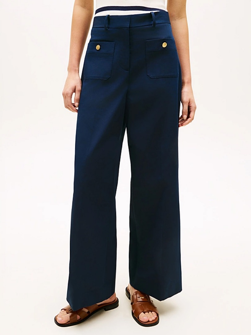 Rinnova il tuo guardaroba con i pantaloni chino a gamba larga con logo in rilievo Tommy Hilfiger, Pensati per uno stile disinvolto e un comfort impareggiabile, questi pantaloni chino Tommy Hilfiger offrono una vestibilità moderna a gamba larga. vestibilità a gamba larga Pulsanti con decorazioni dorate in rilievo Cerniera con doppia chiusura a gancio nascosta Due tasche applicate sul davanti con chiusura a bottone. Due tasche posteriori a filetto Pieghe stirate sul davanti e sul retro Stemma di Tommy Hilfiger impresso sui bottoni Marchio Tommy Hilfiger Bandiera metallica di Tommy Hilfiger sul retro