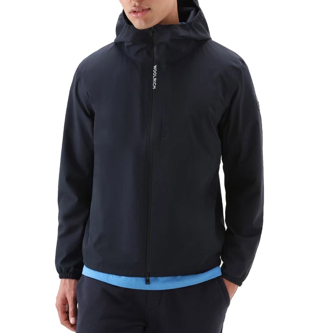 Prestazioni e stile si fondono nella nostra giacca Pacific. Realizzata in poliestere a due strati, è impermeabile e resistente al vento, e completamente nastrata per proteggerti dalle piogge leggere. Le cuciture ergonomiche sulle maniche assicurano grande libertà di movimento. Ha chiusura con zip impermeabile, una tasca a filetto sul petto e due tasche con zip ai lati per mantenere l'essenziale sempre asciutto. Completano il modello la scritta Woolrich sulla cerniera e il lato interno con logo stampato "all-over". Realizzata in poliestere a due strati Impermeabile e resistente al vento Cuciture completamente nastrate Cappuccio elasticizzato ai lati Lato interno con logo stampato "all-over" Zip impermeabile con scritta Woolrich Tasca verticale a filetto con zip sul petto Tasche verticali a filetto con zip sul fondo Fori al laser per ventilazione sotto le maniche Cuciture ergonomiche sulle maniche Polsini elasticizzati Fondo elasticizzato ai lati Badge in silicone con logo sulla manica sinistra Vestibilità regolare