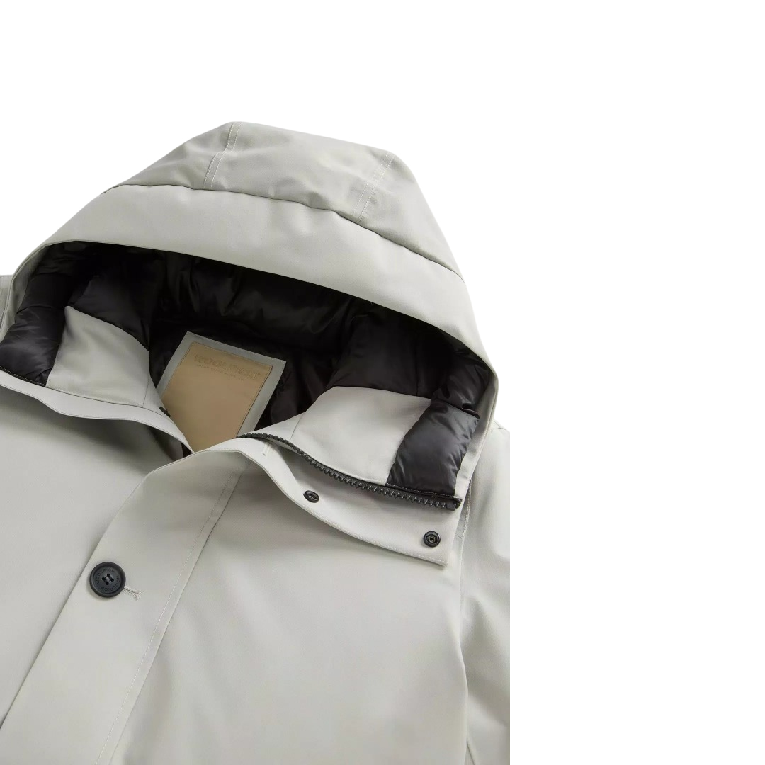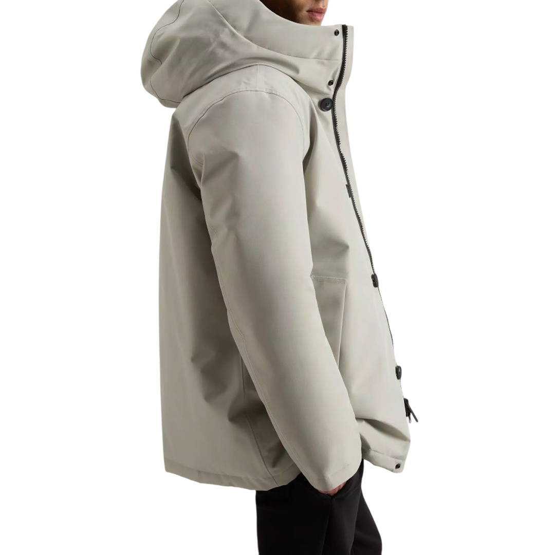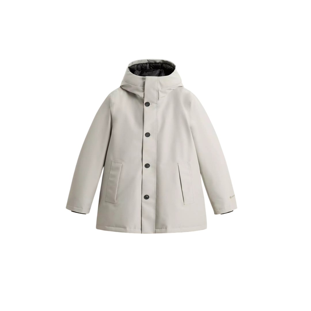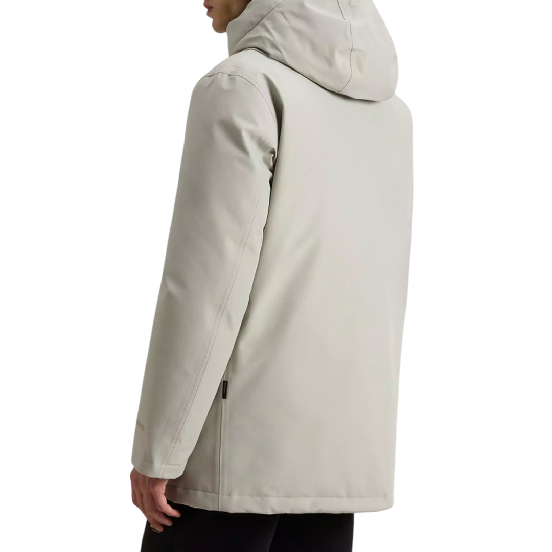 Realizzato in tessuto a 2 strati riciclato GORE-TEX, questo parka è il capospalla perfetto per affrontare la stagione fredda senza pensieri. È antivento, traspirante e impermeabile grazie alla presenza di cuciture interamente nastrate. L’imbottitura in piuma d’anatra garantisce calore e morbidezza, mentre la trapuntatura Chevron all’interno aggiunge un tocco distintivo. Presenta un cappuccio regolabile con visiera, una chiusura con cerniera bidirezionale e bottoni e polsini a costine. Completano il modello le tasche a filetto esterne e le tasche interne, due elasticizzate e una con zip. Realizzato in tessuto a 2 strati riciclato GORE-TEX Impermeabile, antivento e traspirante Cuciture interamente nastrate Imbottito in piuma d'anatra 90/10 RDS certificato da Control Union CU 884067 Trapuntatura Chevron interna Cappuccio regolabile sul retro con visiera Chiusura con zip bidirezionale e bottoni Coulisse interna in vita Tasche laterali a filetto Tasche interne elasticizzate Tasca interna con zip Polsini interni a costine Stampa GORE-TEX sulla manica Etichetta sul lato Scala di termicità: Freddo medio -10 °C / 0 °C