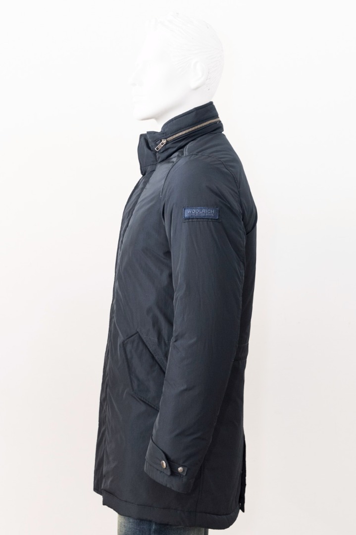 Trench Woolrich con chiusura a zip doppio cursore piu bottoni,collo con zip cappuccio invisibile,due tasche avanti,spacco centrale dietro,polso a costina invisibile.